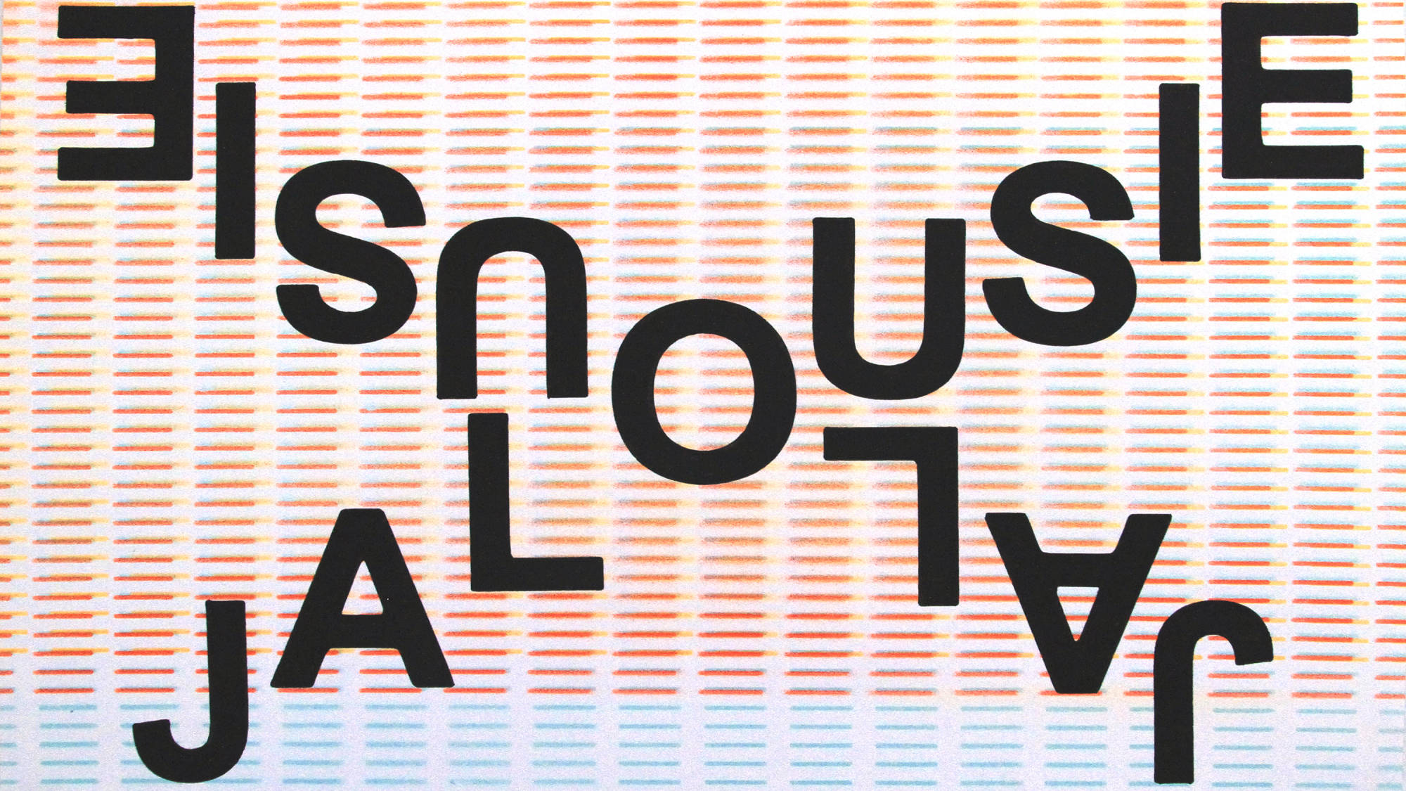 JALOUSIE, 2026; Acryl und Lack auf Papier; 30 cm / 40 cm. STORY, 2026; dieser Text bezieht sich auf die Wandarbeit LEICHTSINNIG UND WAGEMUTIG.