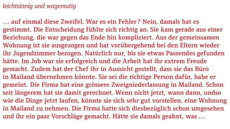 Mich interessieren dabei die Momente, in denen der Inhalt gleichsam Information und Bild sein kann. Dies ist auch der Grund, warum ich immer denselben Font einsetze. Ich benutze eine Grotesk-Schrift, ohne spezielle charakteristische Merkmale. Dies erlaubt mir, den Inhalt stärker in den Vordergrund zu setzen und zu betonen.